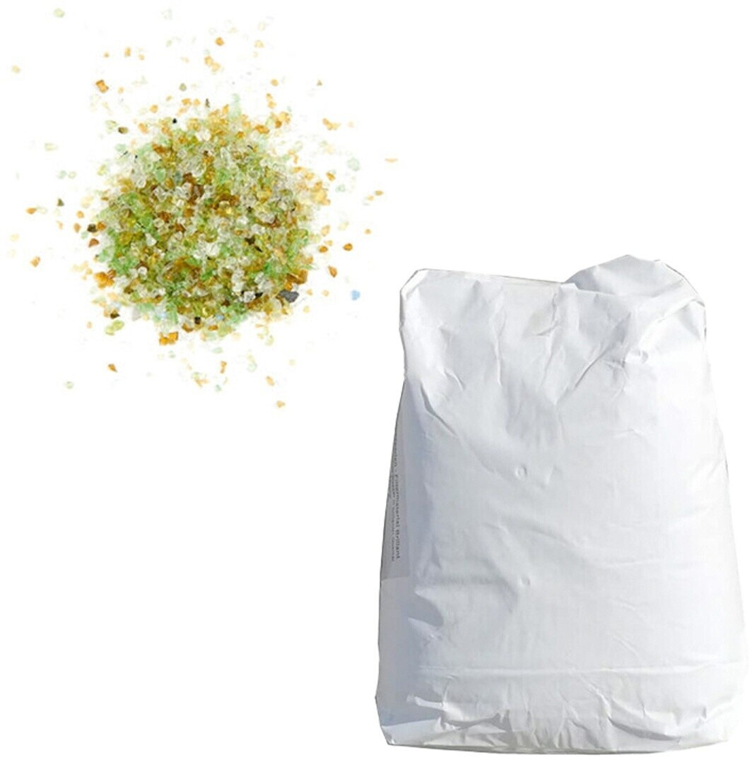 Produsul este fabricat din sticlă reciclată cu compoziție variată: 50-70% SiO₂, 5-25% CaO, 5-25% Na₂O și cantități mici de alte oxizi. Compoziția multicoloră (20-40% sticlă verde, 20-40% sticlă maro, 20-40% sticlă albă, 0-5% sticlă albastră) nu afectează performanța de filtrare. Materialul este inert chimic, nu modifică pH-ul apei și nu conține metale grele periculoase.