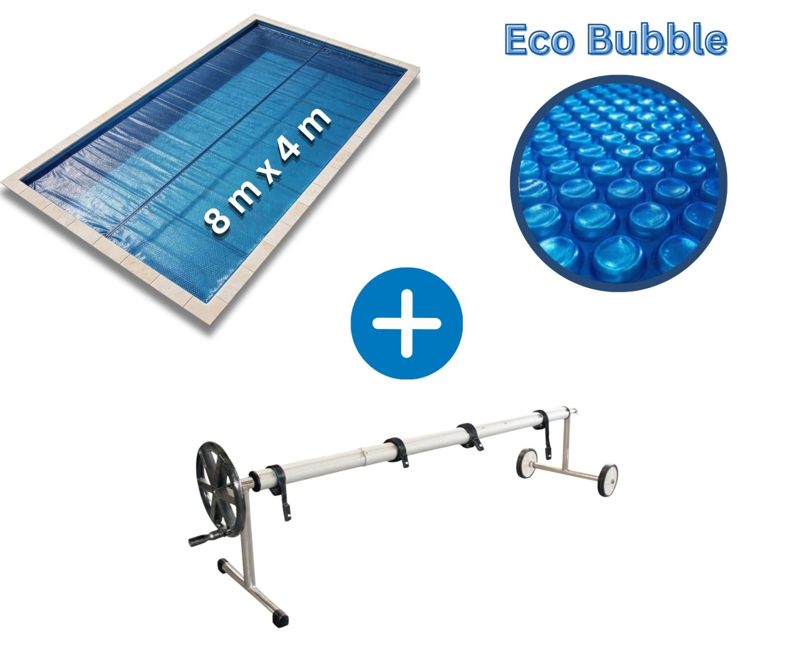 | Conținut pachet | Prelată de vară Eco Bubble 4 × 8 m + derulator telescopic mobil Ø 80 mm |