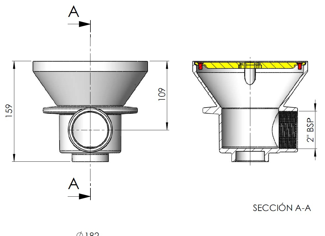 Sifonul se fixează de armătura radierului piscinei înainte de turnarea betonului, eliminând necesitatea garniturilor de etanșeizare. Racordul lateral de 2" permite conectarea directă la conducta de aspirație către pompă, asigurând etanșeitate perfectă prin presiunea betonului turnat.