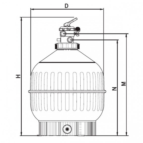 Filtrul D500 TOP este echipat cu vană multiport profesională cu 6 funcții (filtrare, spălare inversă, clătire, recirculare, evacuare, închis) montată superior, cu racorduri de 1½" pentru manevrare rapidă și sigură. Vana este complet conectată pentru toate funcțiile și permite controlul total al procesului de filtrare. Filtrul dispune de manometru de înaltă precizie pentru monitorizarea constantă a presiunii, supapă manuală de aerisire pentru evacuarea aerului din sistem, și ventil de golire apă de 3/4 inch integrat în dopul de evacuare nisip de 1½", care permite golirea completă fără pierderi de material filtrant. Gura de încărcare de 177mm facilitează umplerea cu nisip pentru filtrele de dimensiuni mici.