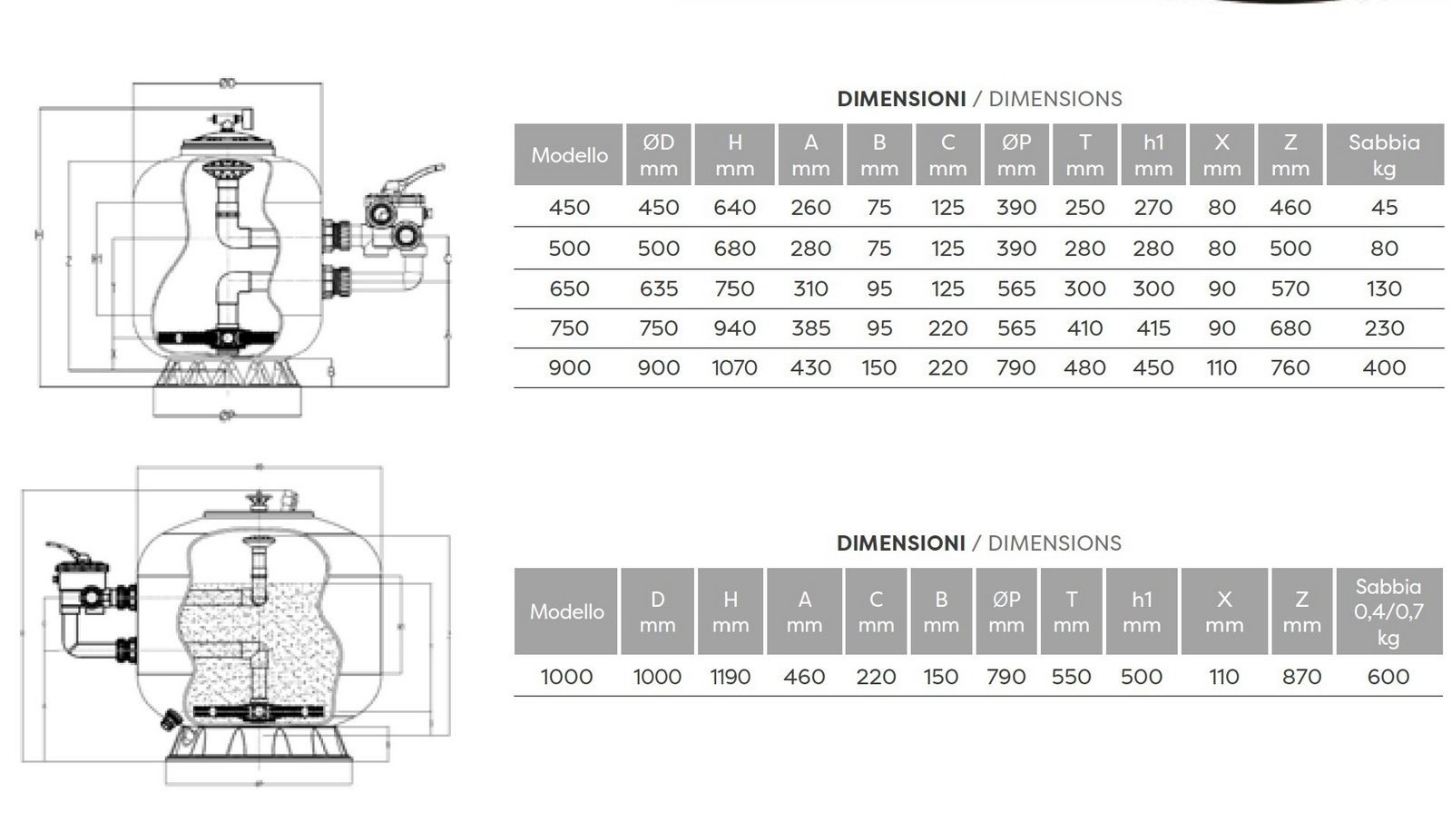 Filtrul Mediterraneo Side 900 este soluția ideală pentru piscine private cu volume până la 180 metri cubi. Debitul nominal de 30 m³/h asigură realizarea unui ciclu complet de filtrare în 6 ore, conform standardelor recomandate pentru menținerea unei ape curate și sănătoase.
